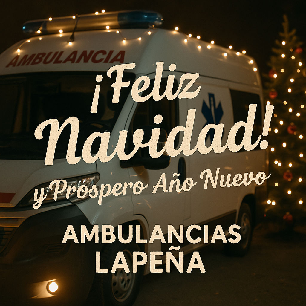 Desde Ambulancias Lapeña queremos desearos unas fiestas llenas de salud, tranquilidad y buenos momentos junto a los vuestros. Gracias por confiar en nosotros durante todo el año. Seguiremos trabajando con la misma vocación y compromiso que nos define. ¡Feliz Navidad y un próspero Año Nuevo!